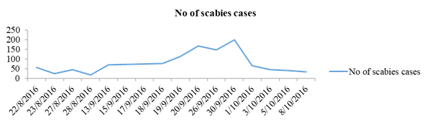 Background: Scabies is a contagious ectoparasite of the skin caused by the microscopic mite Sarcoptic scabies var. hominis. It is usually spread by direct and prolonged skin-to-skin contact with someone with scabies. Schools, refugee camps, and prisons are often sources of scabies outbreaks in developing countries, with the major aggravating factors being environmental (warm weather and climate change)